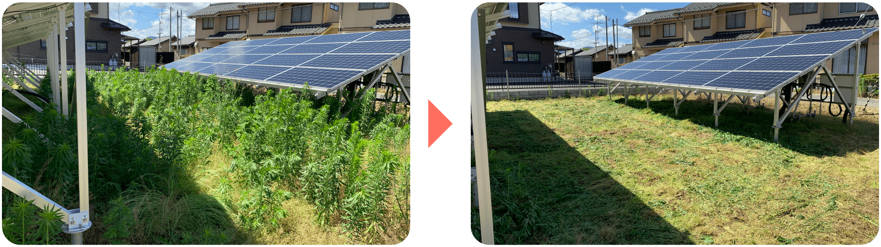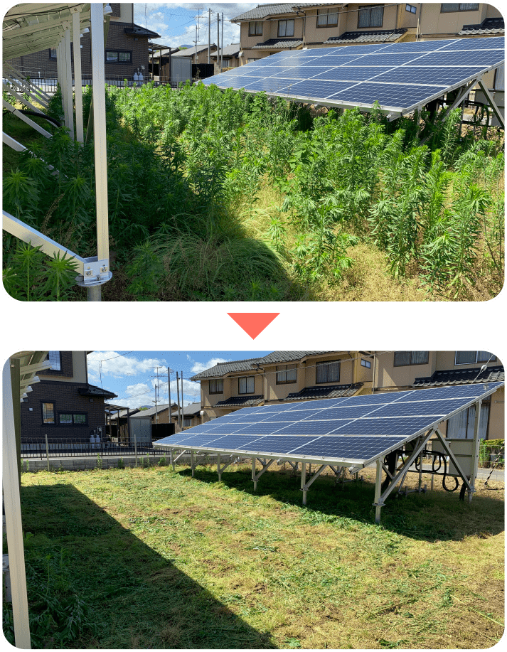 太陽光発電所のトラブルの原因となる雑草を刈り取って、安心な太陽光発電所経営をサポート。